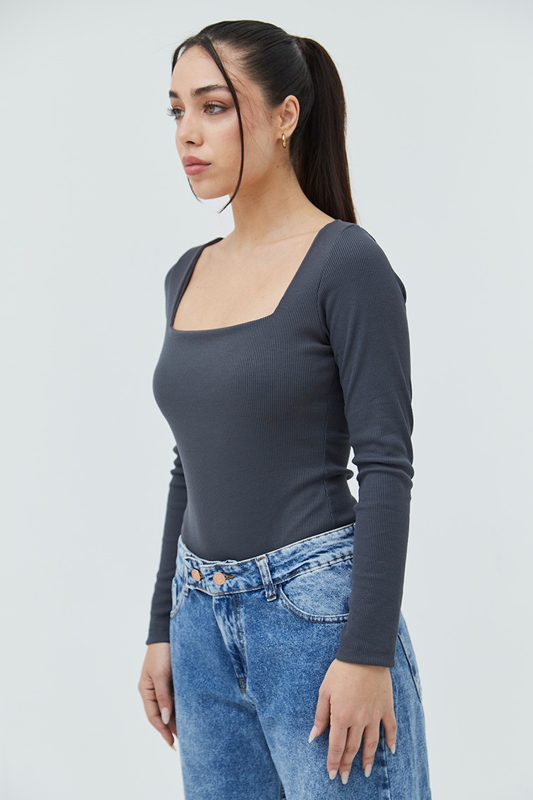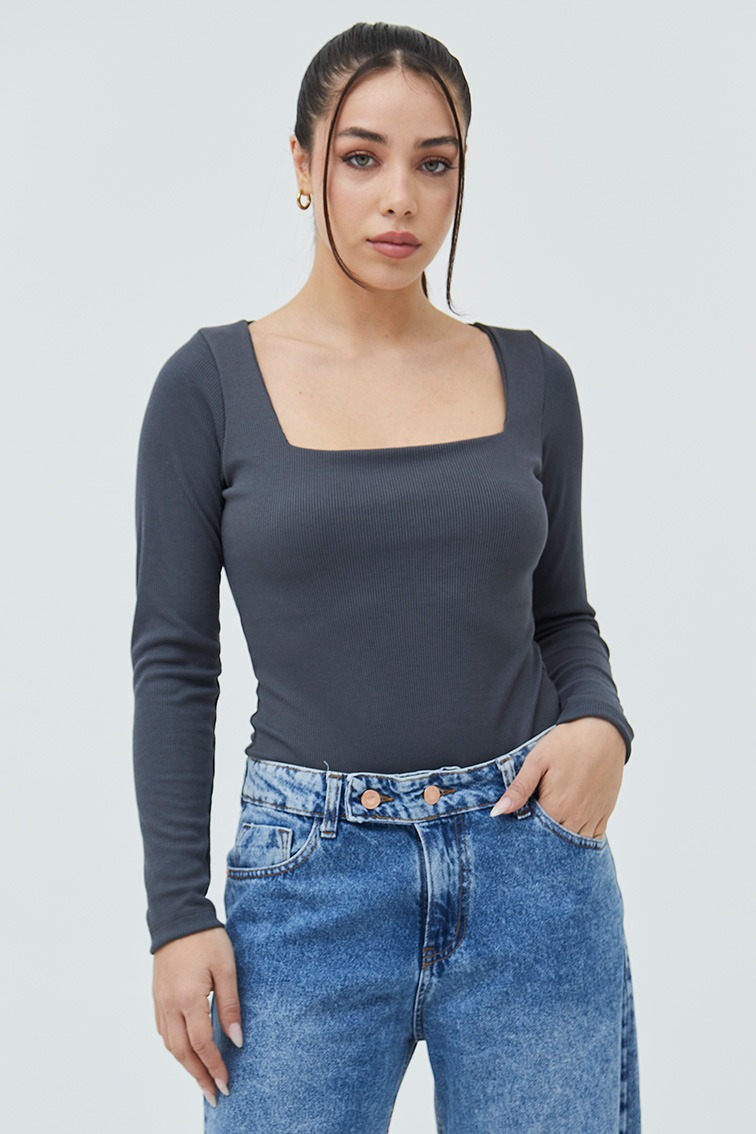 body manga larga escote cuadrado embolsado