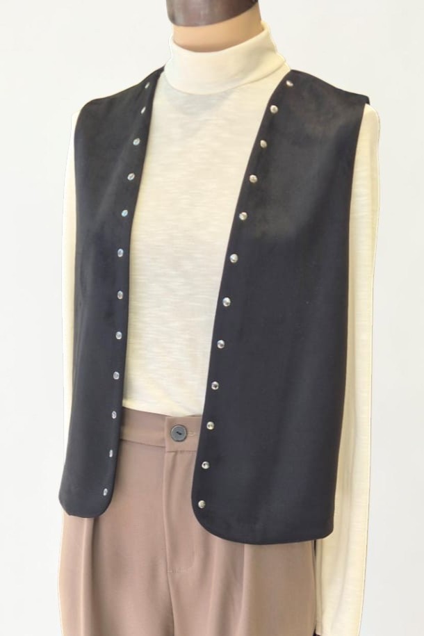 InicioFALL WINTER 26CAMISAS, BLUSAS Y SACOSchaleco con tachas y forro