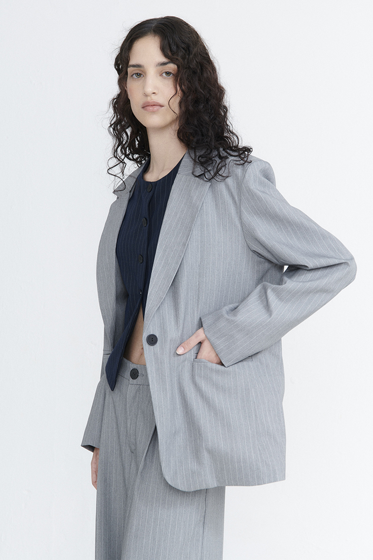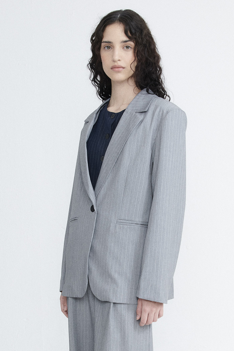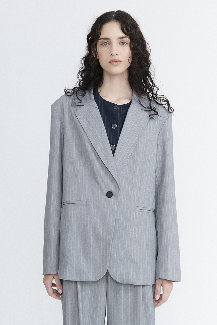 saco oversize con un boton t123 (sastrero rayado)